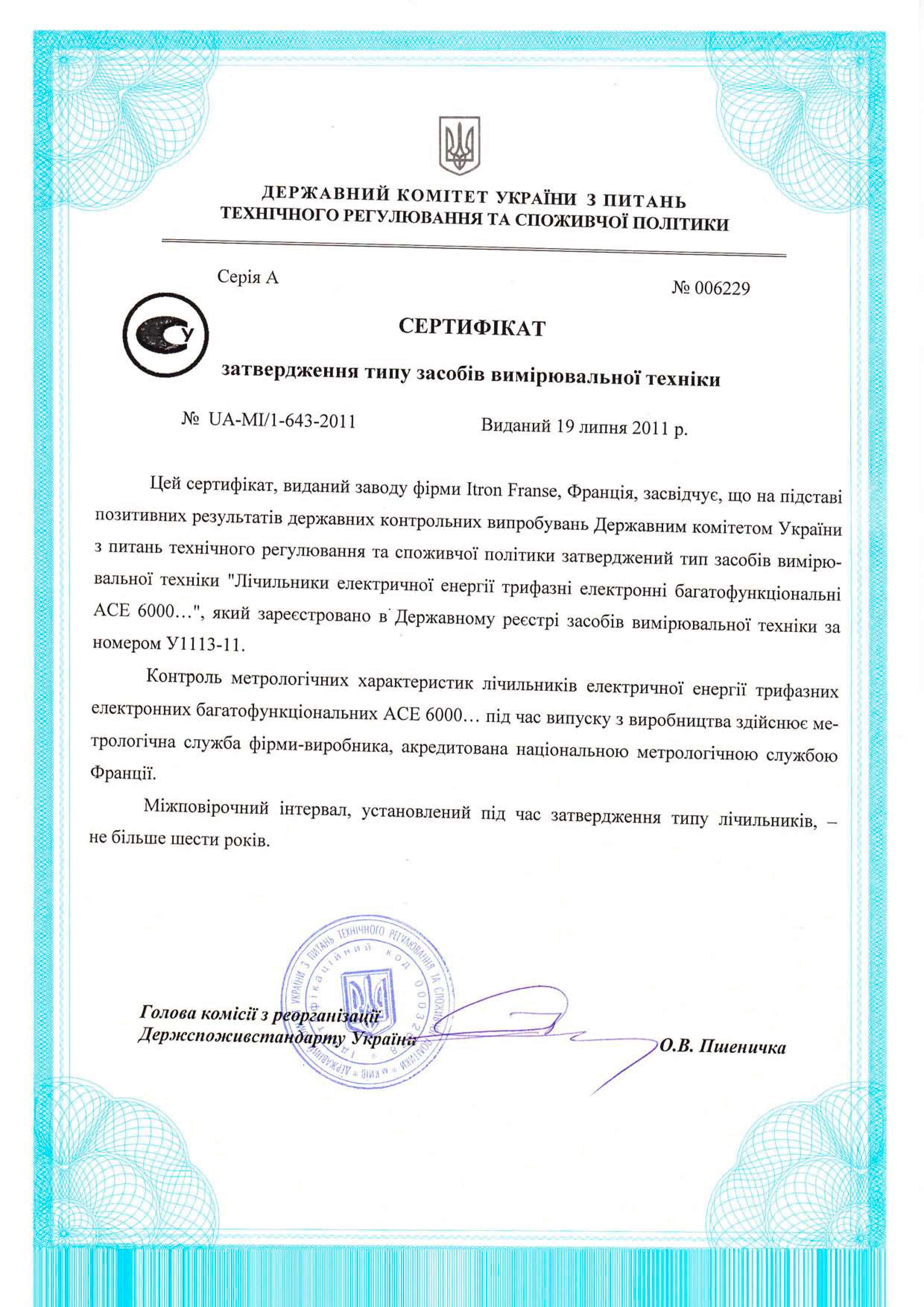 Счетчик ACE 6000 зарегистрирован в Государственном реестре средств измерительной техники за № У1113-06
