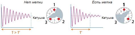 - З катушки индуктивности внутри датчика Cyble детектируют вращение метки путем измерения изменения индуктивности каждой из 3-х катушек;