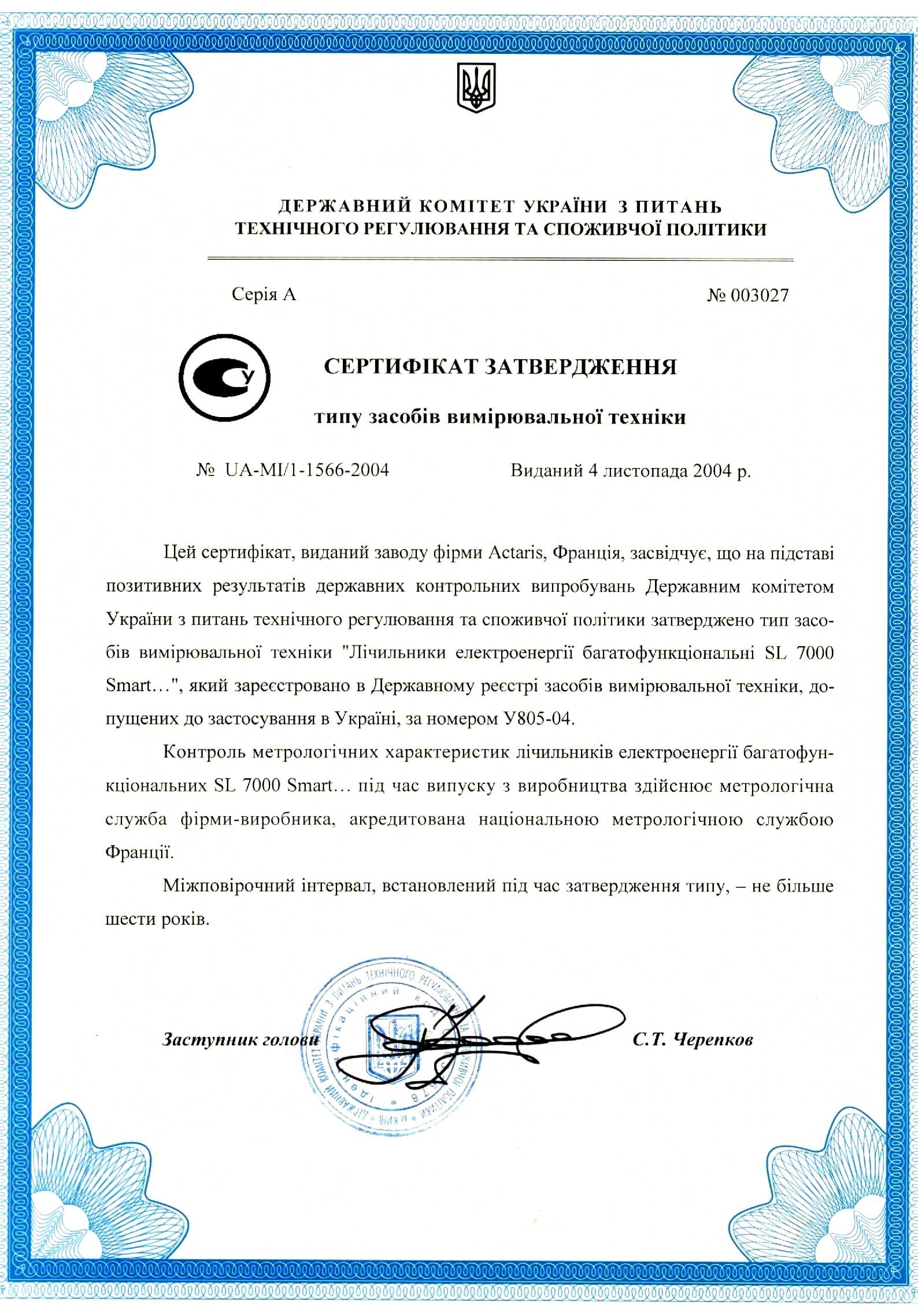 Счетчик SL7000 Smart зарегистрирован в Государственном реестре средств измерительной техники под № У805-04